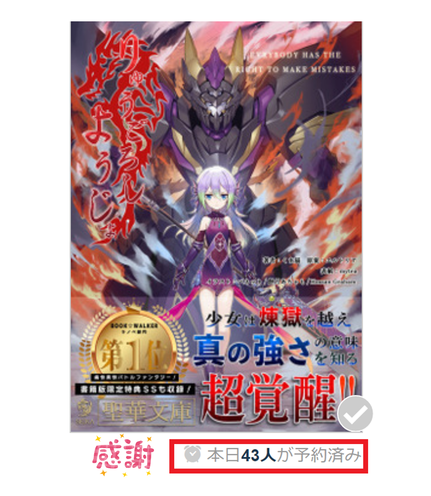 カクヨムでお読みの皆さま、りゅうごろしようじょの第二巻の予約が開始されましたのでご報告致します。なんと本日予約開始で現時点で43名様にご予約頂けました。もしよろしければ、皆さまもぜひぜひ宜しくお願いいたします!