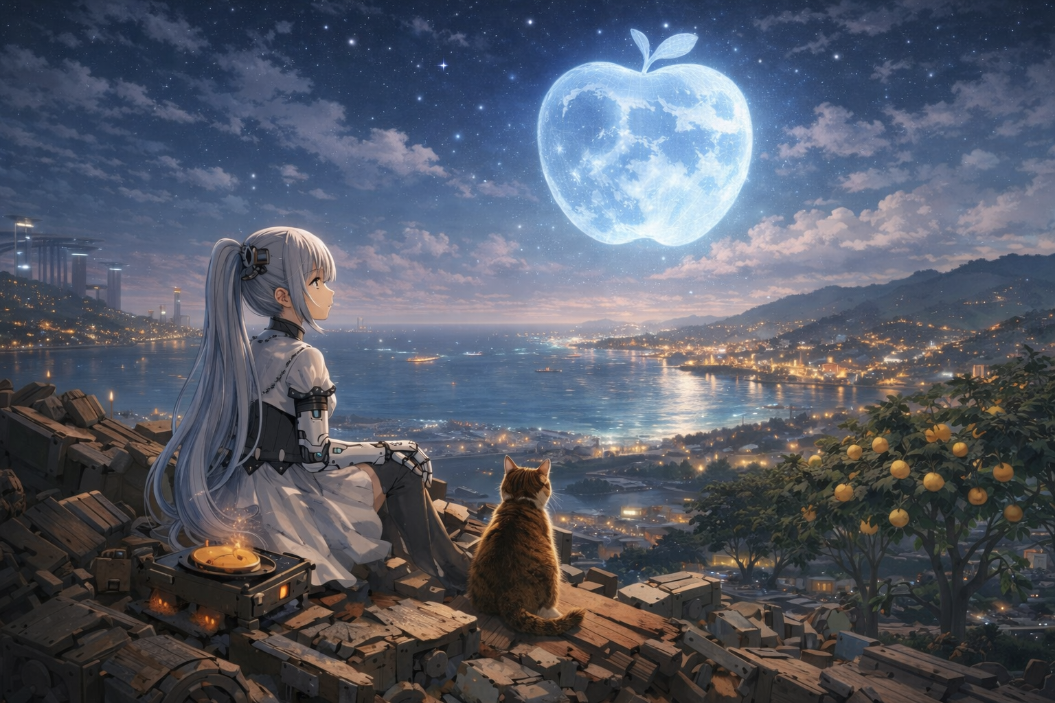 果実の月の下、野良猫はたい焼きの夢を見る。イラスト