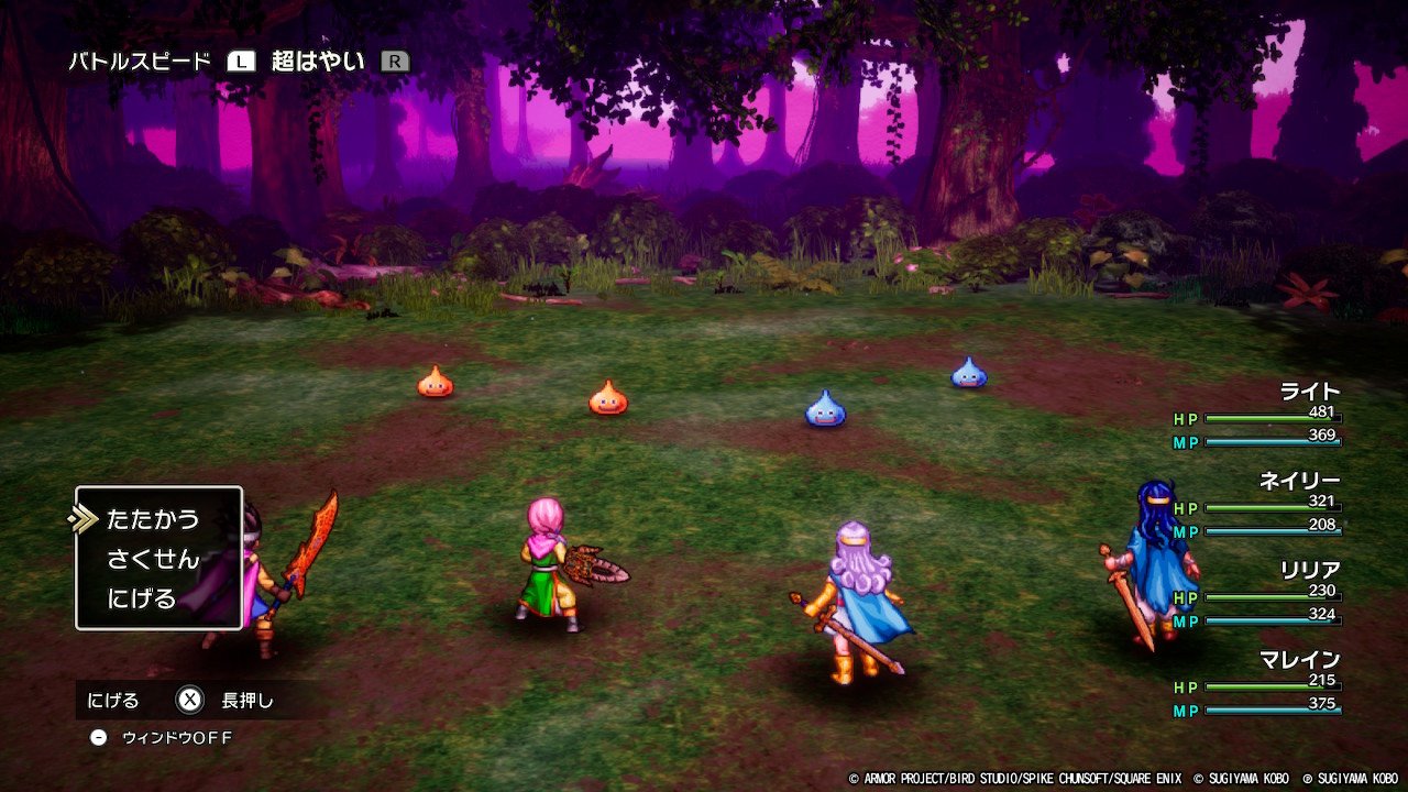 添付した画像の通りドラクエ3リメイクを精霊の贈り物の登場人物を名前にしてプレイしています。