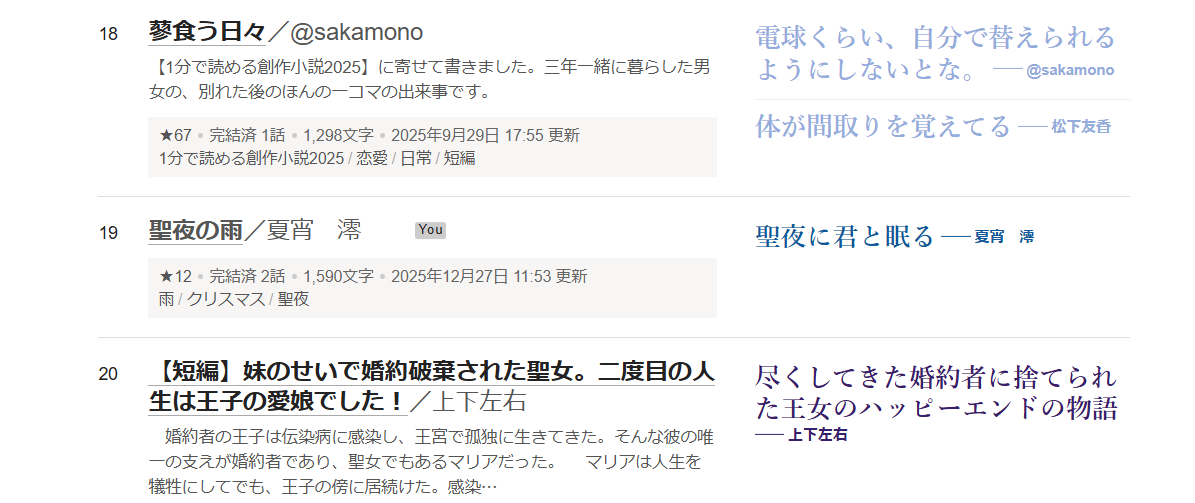 https://kakuyomu.jp/works/822139841996095929今回は「聖夜の雨」という、クリスマスがテーマの小説を書きました🎄