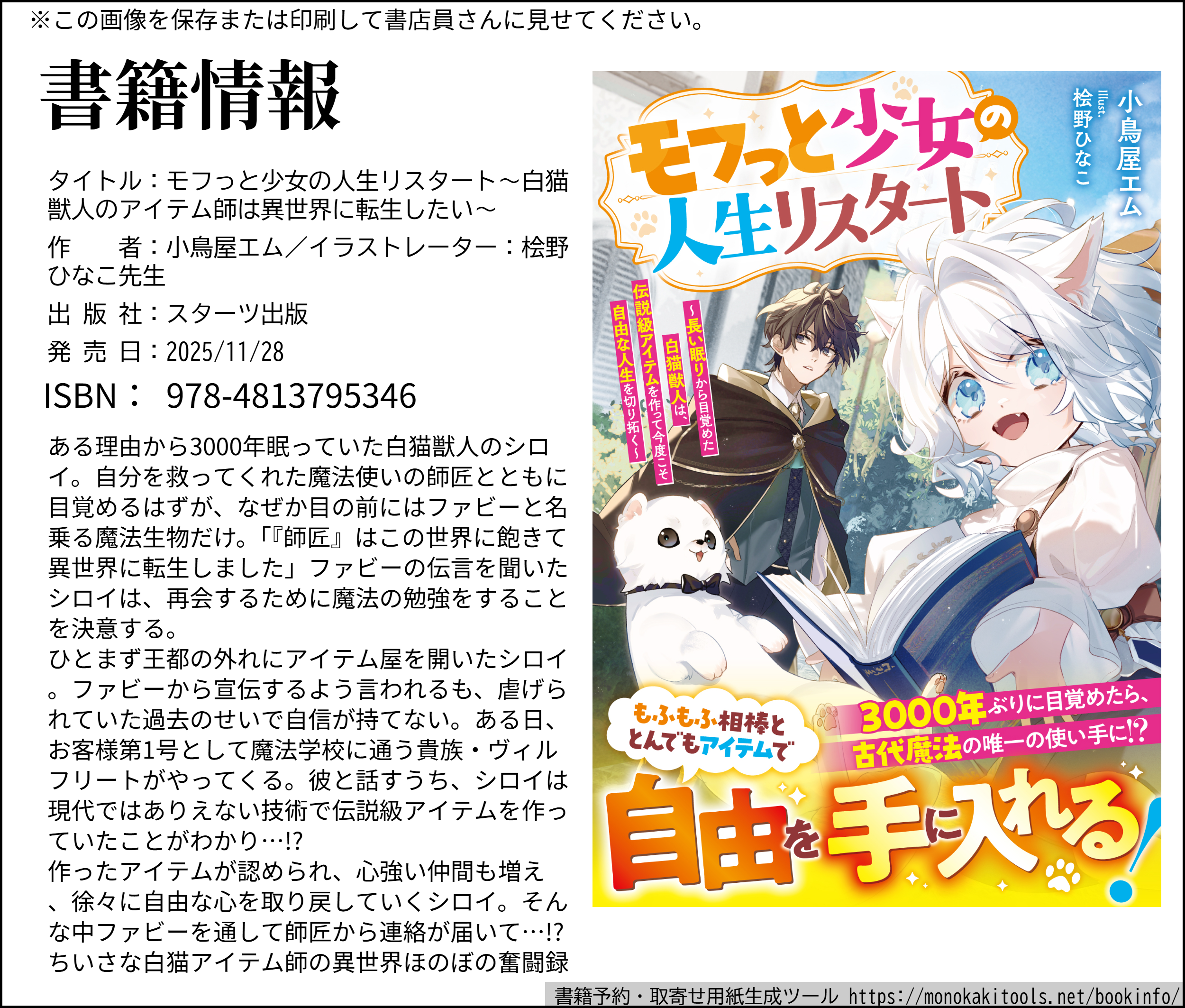 「モフっと少女の人生リスタート~長い眠りから目覚めた白猫獣人は、伝説級アイテムを作って今度こそ自由な人生を切り拓く~」