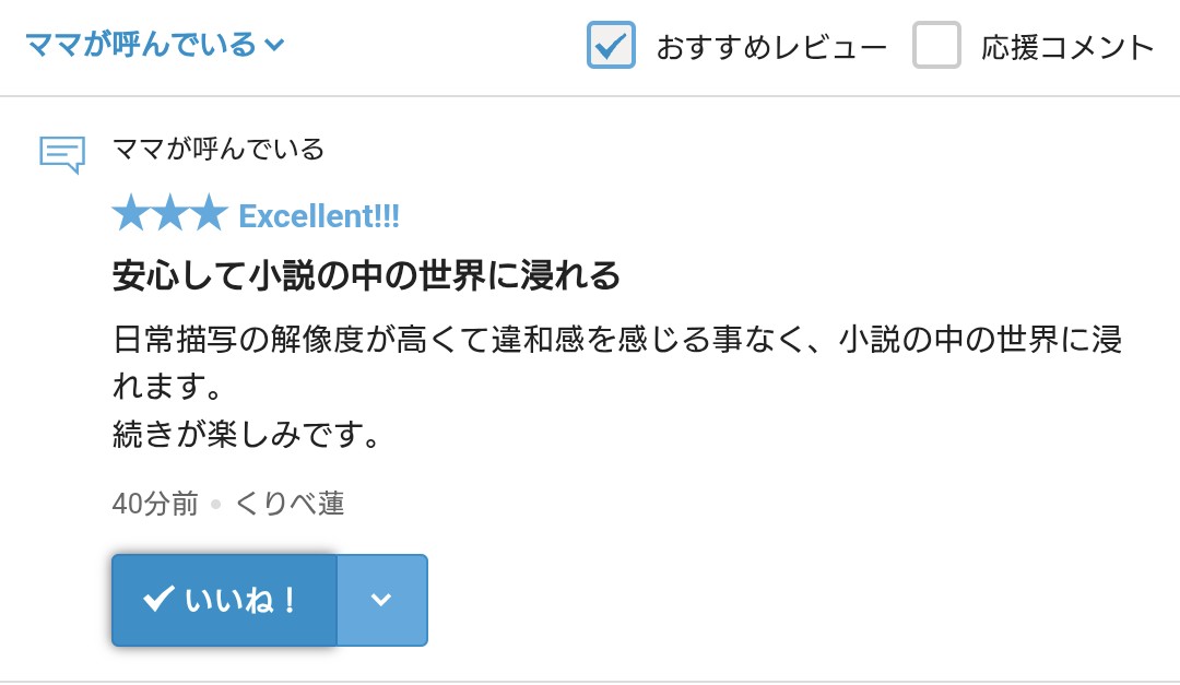 さて、拙作「ママが呼んでいる」に☆・レビューをいただきましたので、お礼の報告をさせていただきます。