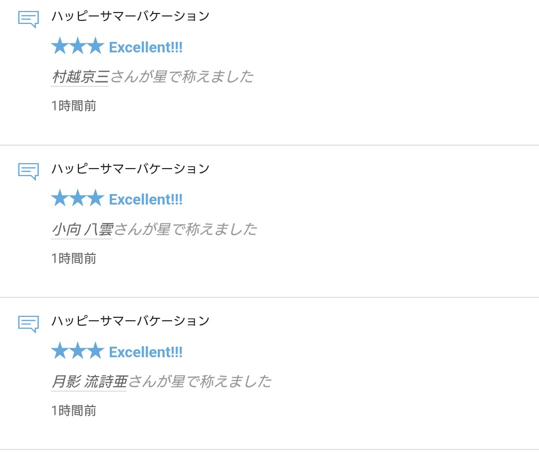 さて、拙作「ハッピーサマーバケーション」に☆をいただきましたので、お礼の報告をさせていただきます。
