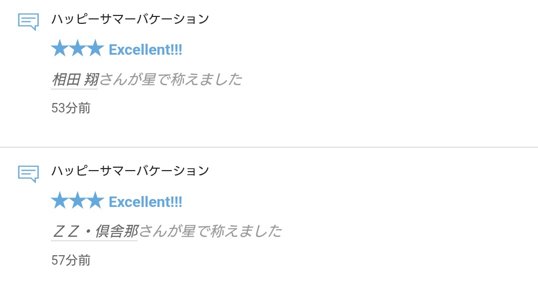 さて、拙作「ハッピーサマーバケーション」に☆をいただきましたので、お礼の報告をさせていただきます。