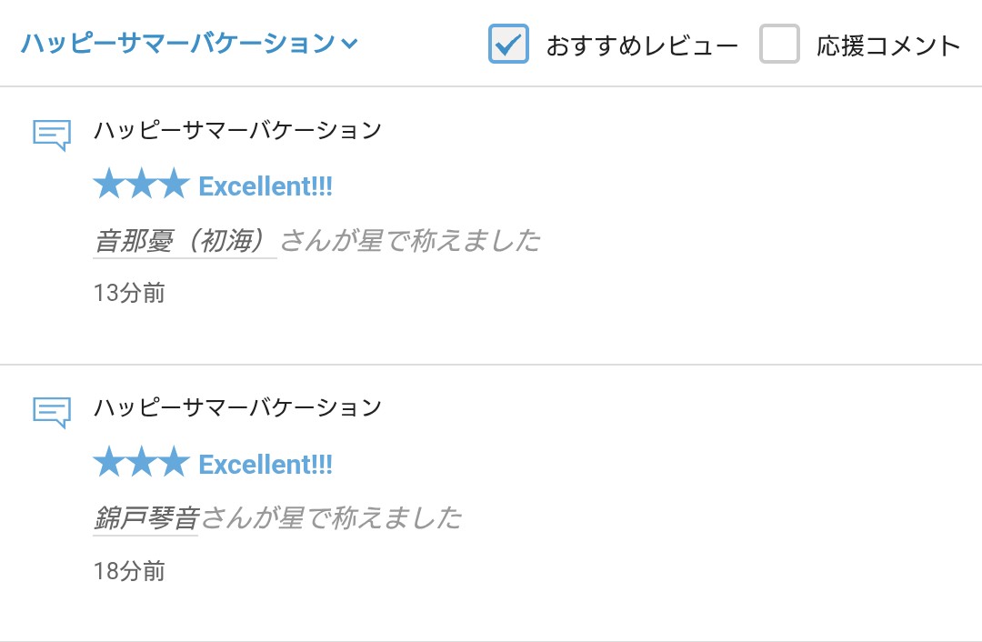 さて、拙作「ハッピーサマーバケーション」に☆をいただきましたので、お礼の報告をさせていただきます。