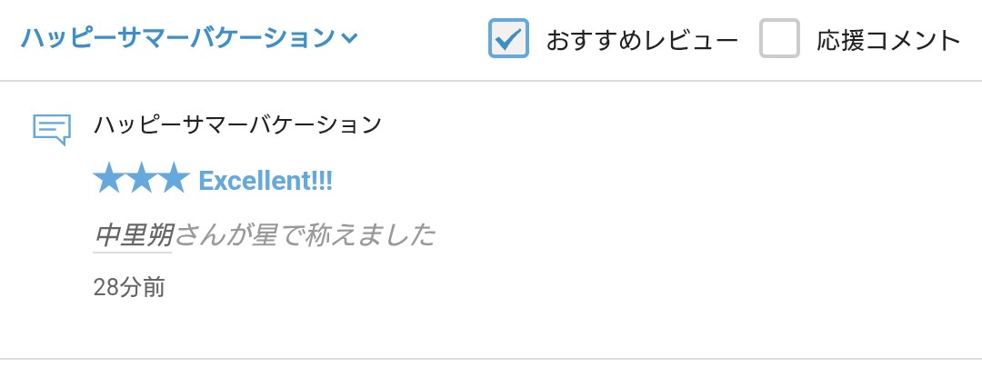 さて、拙作「ハッピーサマーバケーション」に☆をいただきましたので、お礼の報告をさせていただきます。
