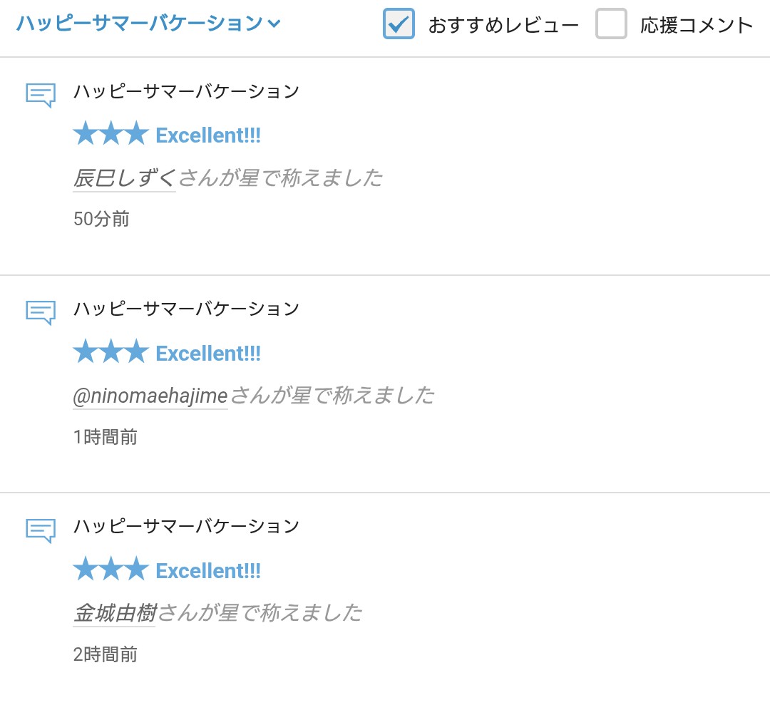 さて、拙作「ハッピーサマーバケーション」に☆をいただきましたので、お礼の報告をさせていただきます。