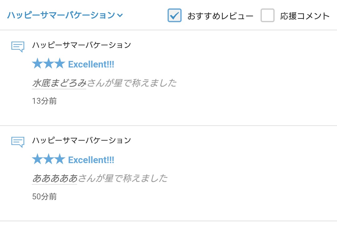 さて、拙作「ハッピーサマーバケーション」に☆をいただきましたので、お礼の報告をさせていただきます。