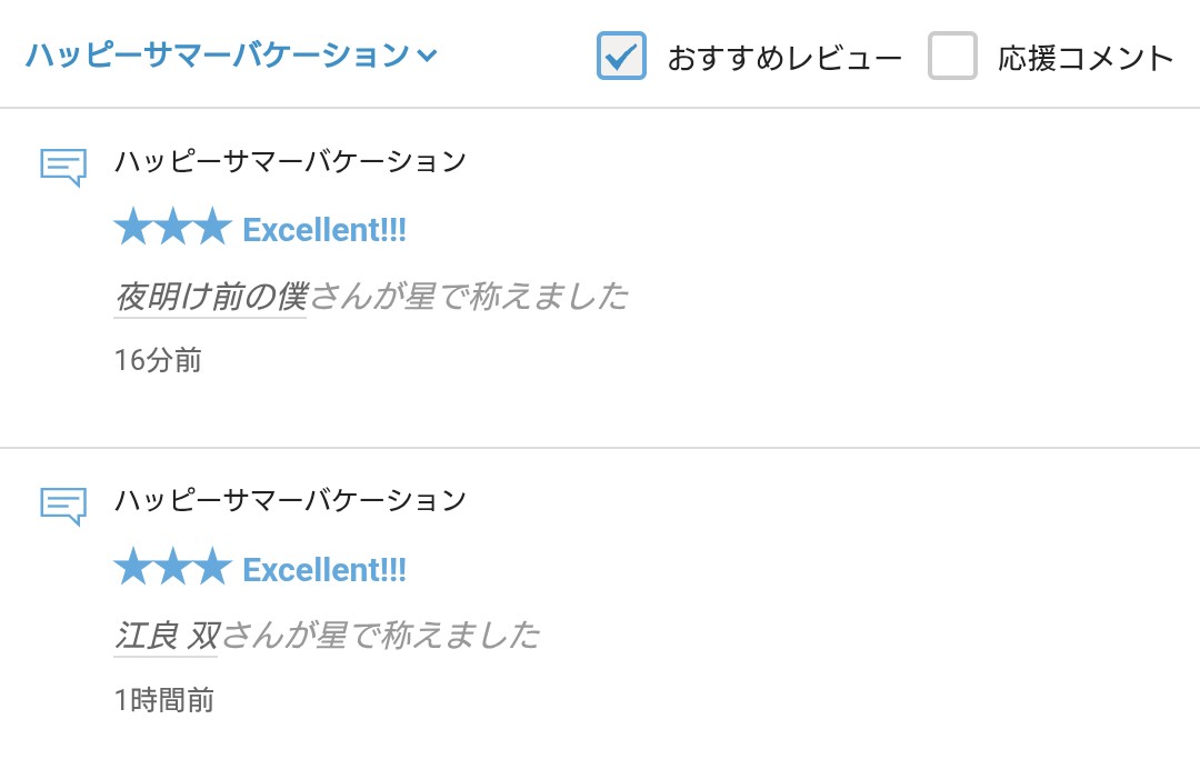 さて、拙作「ハッピーサマーバケーション」に☆をいただきましたので、お礼の報告をさせていただきます。