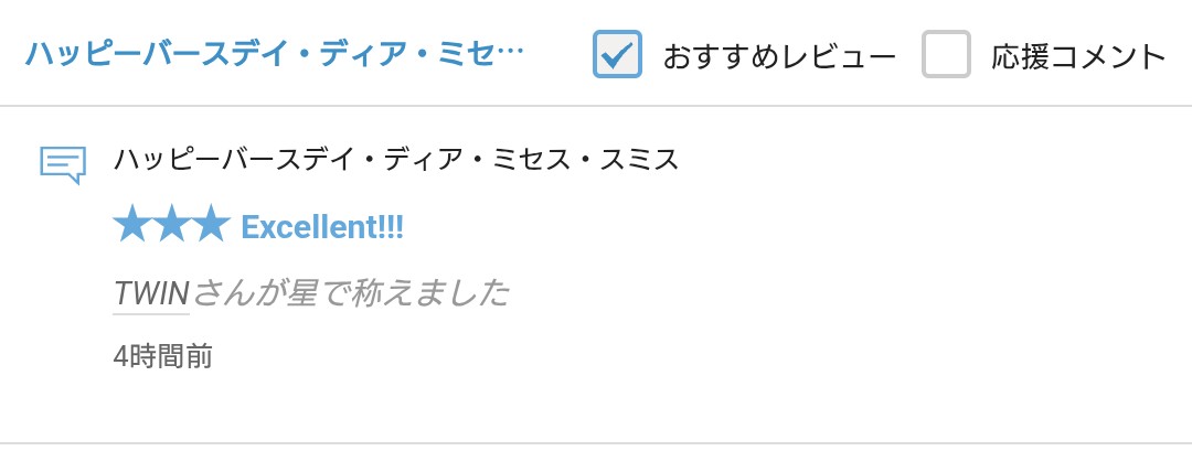 さて、拙作「ハッピーバースデイ・ディア・ミセス・スミス」に☆をいただきましたので、お礼の報告をさせていただきます。