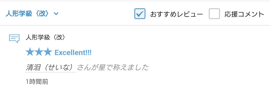 さて、拙作「人形学級〈改〉」に☆をいただきましたので、お礼の報告をさせていただきます。