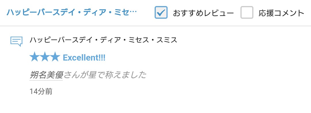 さて、拙作「ハッピーバースデイ・ディア・ミセス・スミス」に☆をいただきましたので、お礼の報告をさせていただきます。