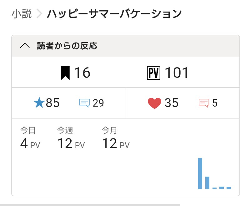さて、拙作「ハッピーサマーバケーション」が100PVを突破いたしましたので、報告させていただきます。