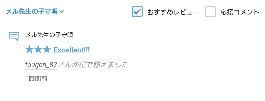 さて、拙作「メル先生の子守唄」に☆をいただきましたので、お礼の報告をさせていただきます。