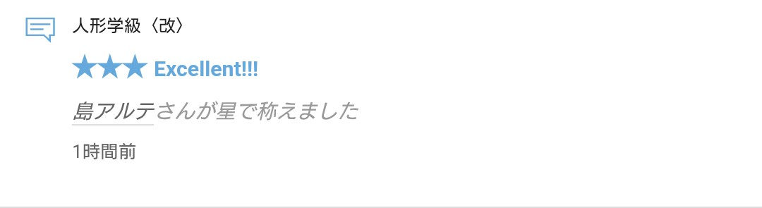 さて、拙作「人形学級〈改〉」に☆をいただきましたので、お礼の報告をさせていただきます。