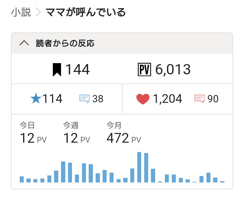 さて、拙作「ママが呼んでいる」が6000PVを突破いたしましたので、報告させていただきます。