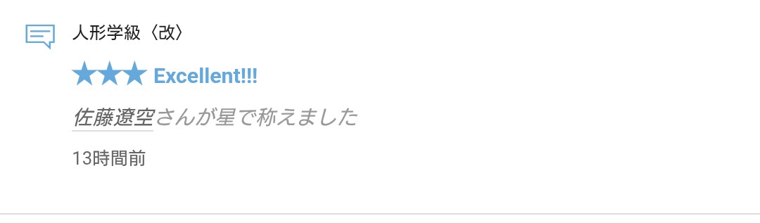 さて、拙作「人形学級〈改〉」に☆をいただきましたので、お礼の報告をさせていただきます。