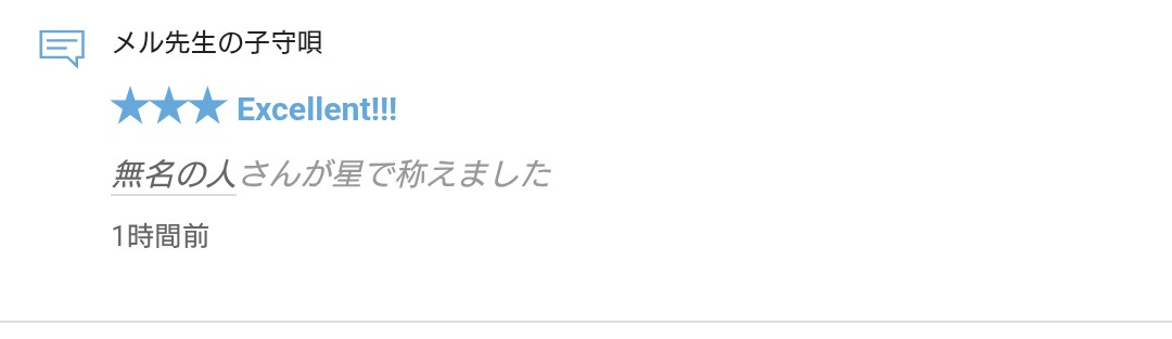 さて、拙作「メル先生の子守唄」に☆をいただきましたので、お礼の報告をさせていただきます。