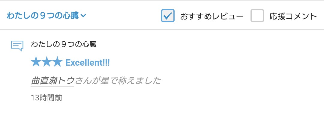 さて、拙作「わたしの9つの心臓」に☆をいただきましたので、お礼の報告をさせていただきます。