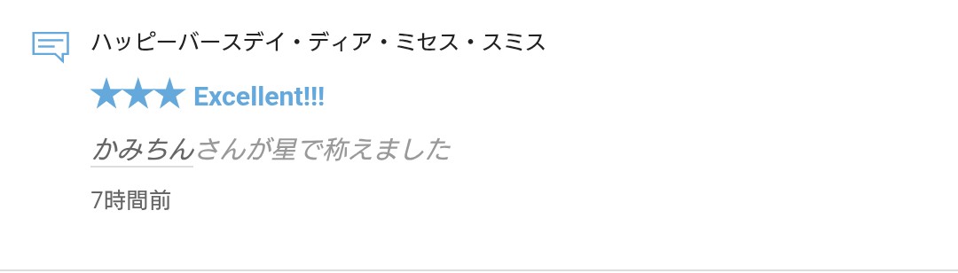 さて、拙作「ハッピーバースデイ・ディア・ミセス・スミス」に☆をいただきましたので、お礼の報告をさせていただきます。