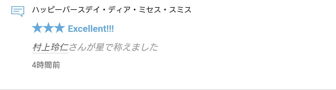 さて、拙作「ハッピーバースデイ・ディア・ミセス・スミス」に☆をいただきましたので、お礼の報告をさせていただきます。