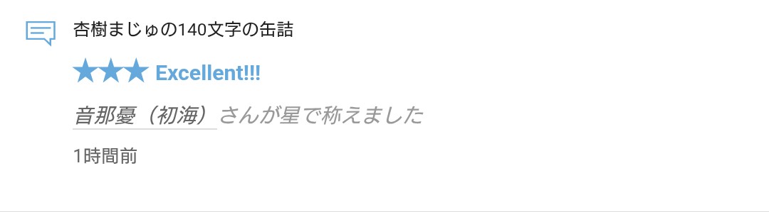 さて、拙作「杏樹まじゅの140文字の缶詰」に☆をいただきましたので、お礼の報告をさせていただきます。