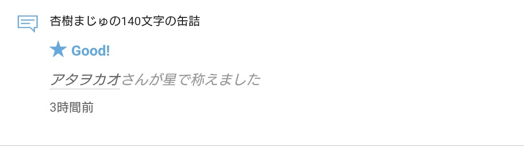 さて、拙作「杏樹まじゅの140文字の缶詰」に☆をいただきましたので、お礼の報告をさせていただきます。