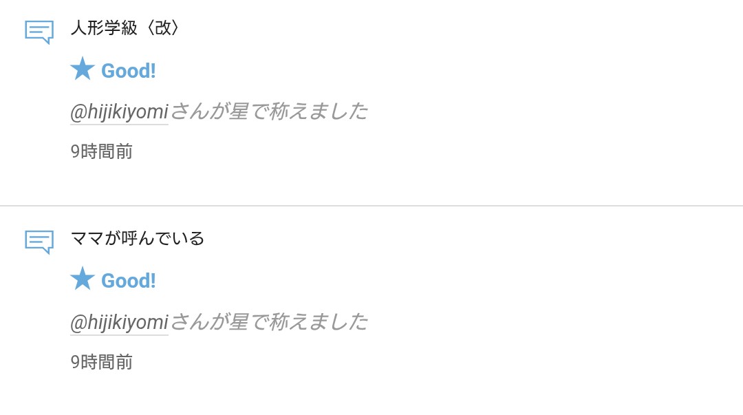 ◇◆◇◆@hijikiyomiさんから☆を頂きました◆◇◆◇