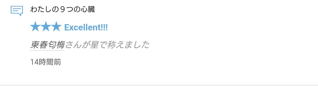 さて、拙作「わたしの9つの心臓」に☆をいただきましたので、お礼の報告をさせていただきます。