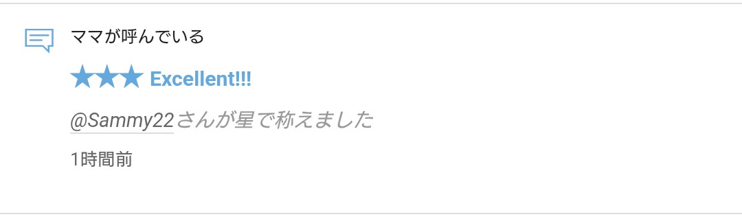 さて、拙作「ママが呼んでいる」に☆をいただきましたので、お礼の報告をさせていただきます。