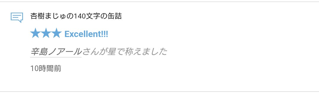 さて、拙作「杏樹まじゅの140文字の缶詰」に☆をいただきましたので、お礼の報告をさせていただきます。