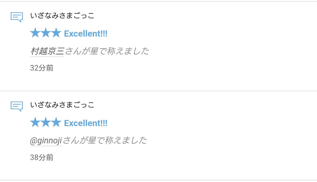 さて、拙作「いざなみさまごっこ」に☆をいただきましたので、お礼の報告をさせていただきます。