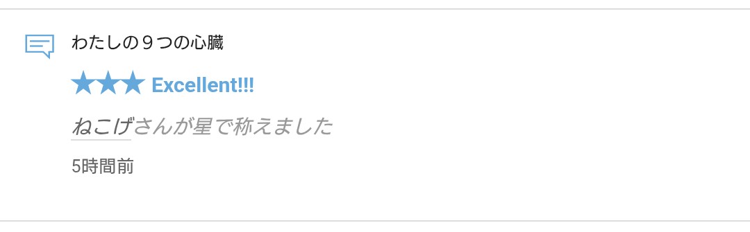 さて、拙作「わたしの9つの心臓」に☆をいただきましたので、お礼の報告をさせていただきます。