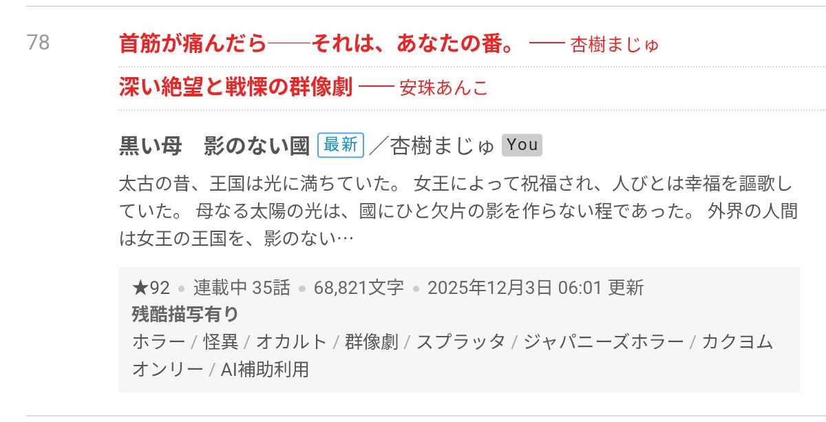 https://kakuyomu.jp/works/822139838482908394カクヨムコンテスト11 ホラー部門エントリー作品です。