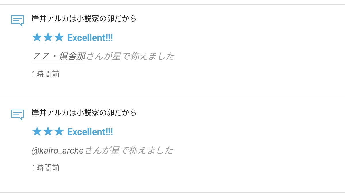 さて、拙作「岸井アルカは小説家の卵だから」に☆をいただきましたので、お礼の報告をさせていただきます。