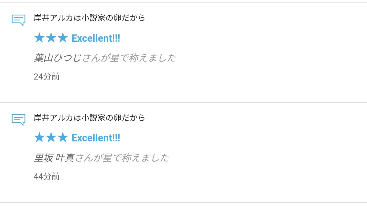 さて、拙作「岸井アルカは小説家の卵だから」に☆をいただきましたので、お礼の報告をさせていただきます。