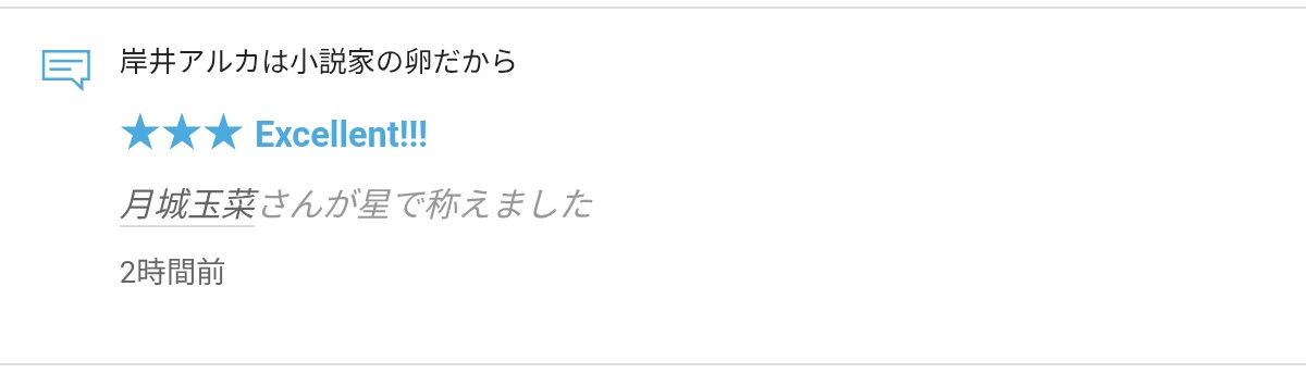 さて、拙作「岸井アルカは小説家の卵だから」に☆をいただきましたので、お礼の報告をさせていただきます。