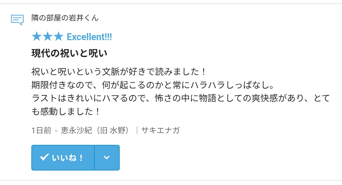 さて、拙作「隣の部屋の岩井くん」に☆・レビューをいただきましたので、お礼の報告をさせていただきます。