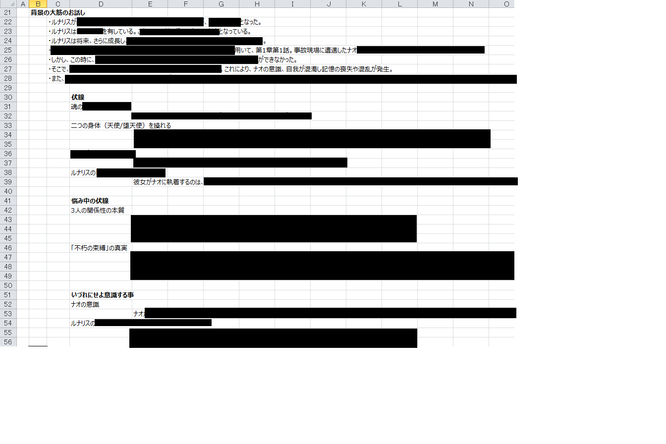 以下のように本作は100万文字、200万文字以上のシナリオ要素案を事前に用意し、執筆を進めております。