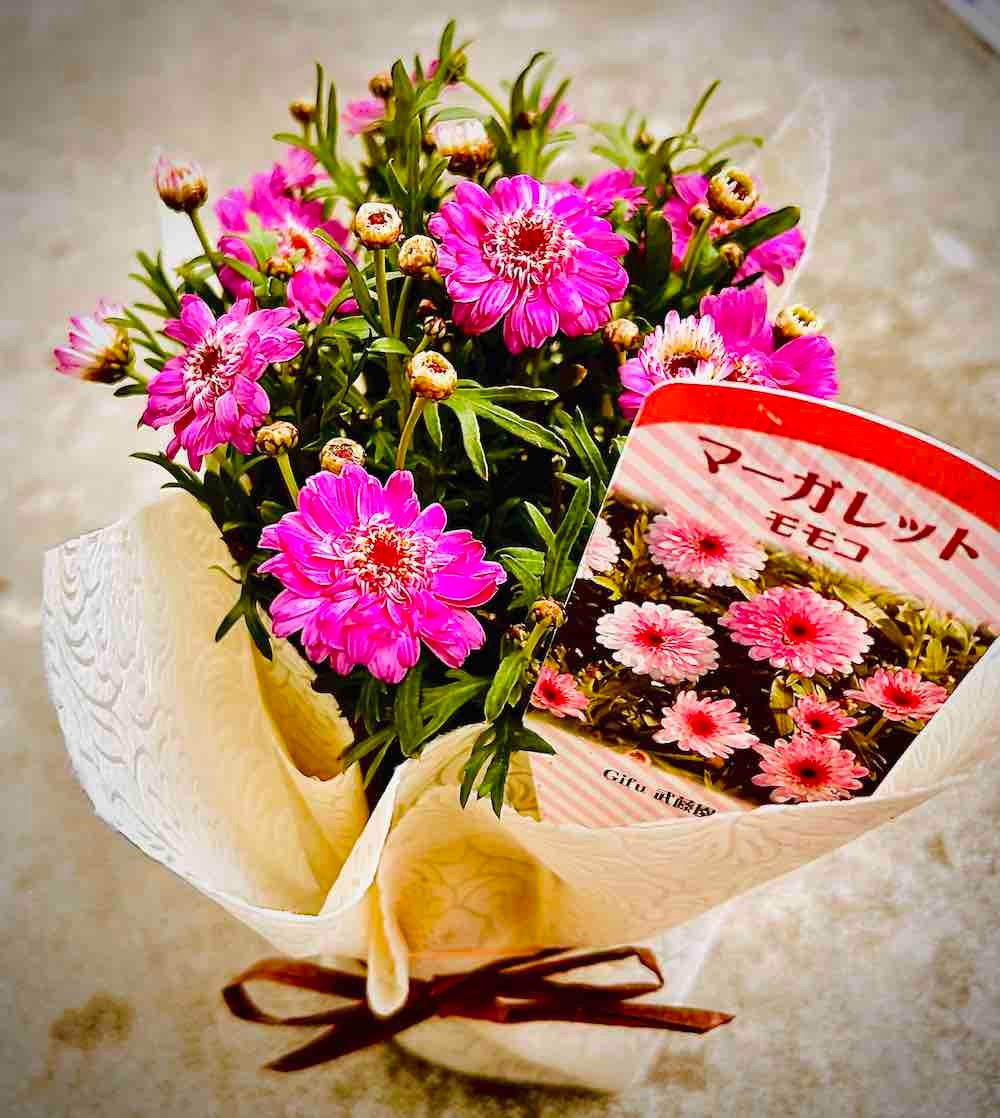 今日は定期検診で歯医者に行ってきました。すると、開業16周年記念とのことでお花をいただきました。「選んでもいいですよ」とのことでしたので、迷わず「マーガレット」を選んじゃいました。