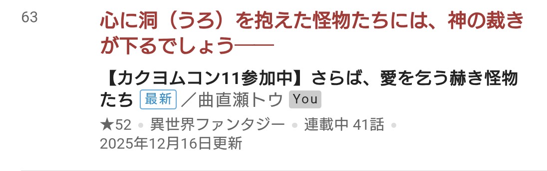 カクヨムコンテスト11週間ランキング