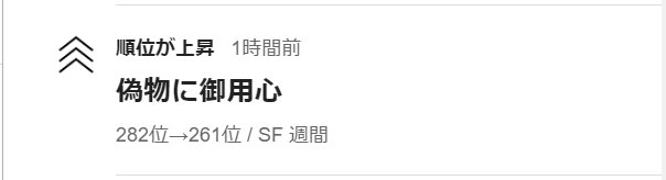 今朝、『偽物に御用心』の順位がわずかながら上昇していました(画像)。