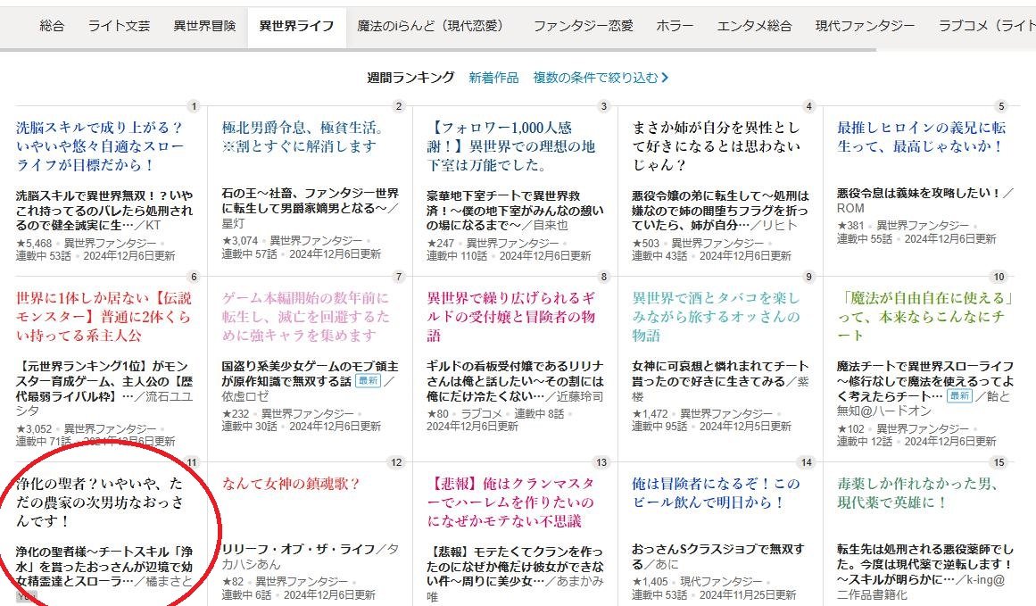 【浄化の聖者】カクヨムコン10、異世界ライフ部門週間ランキング11位ありがとうございます!