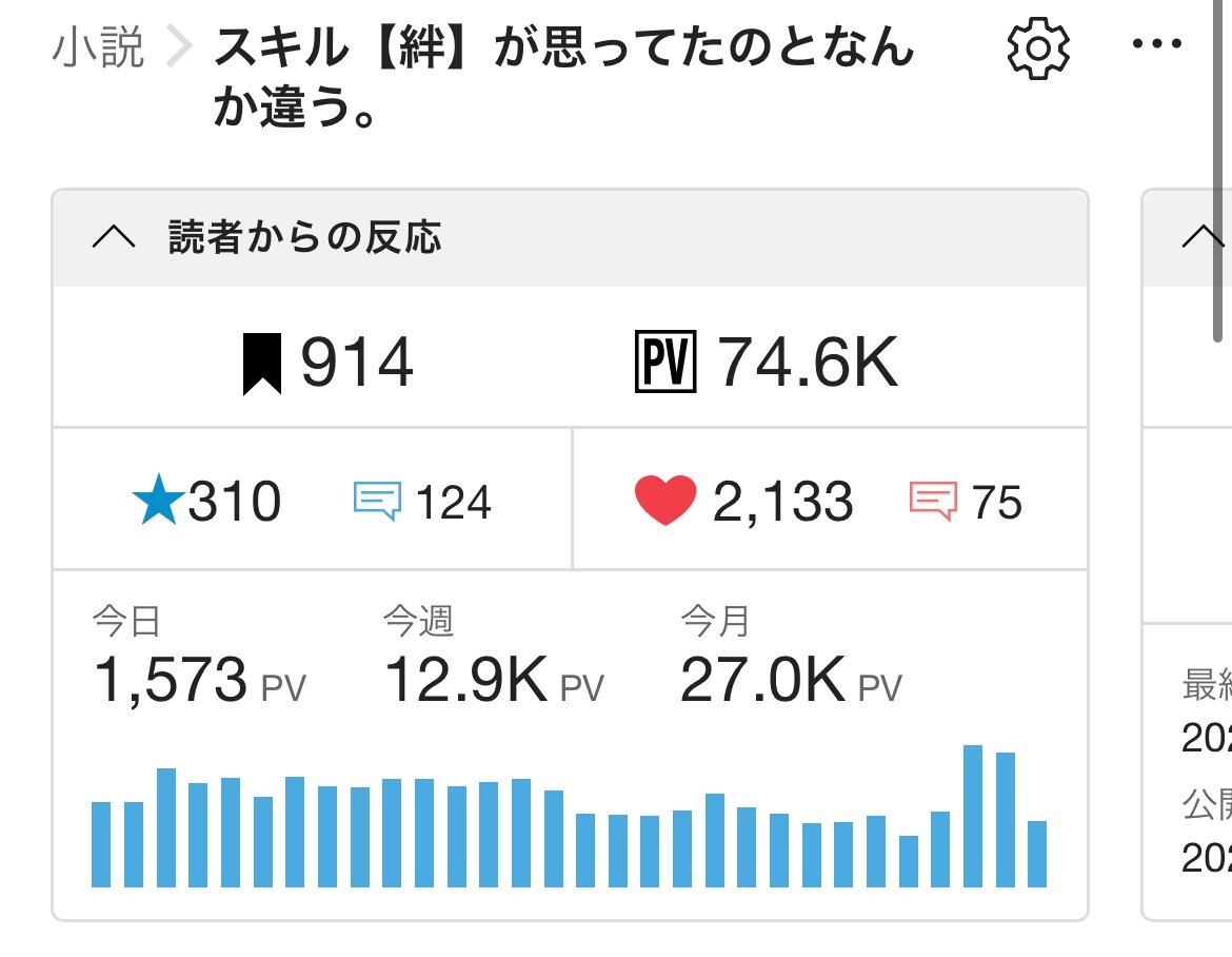 さらに、その日を境にカクヨムのほうでもPVやフォロワー、☆評価などがこれまで以上に伸びるようになり(画像で急にPVが伸びてるあたりから)、久々にカクヨムのカテゴリ別週間ランキングでも順位を上げることができています。(異世界ファンタジー300位くらい)