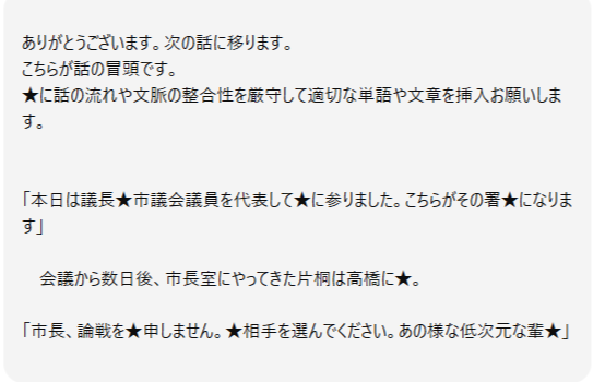 といった具合です。生成AIを使われた方なら分かるかと思いますが、AIは本当に流れや情景に合致しない変な文章を作成します。ハッキリ言ってそのまま使えないことが大半です。