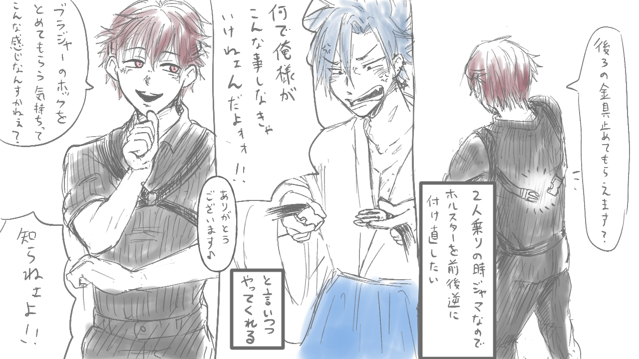 陽丸にホックをとめてもらうシーンの漫画イラスト