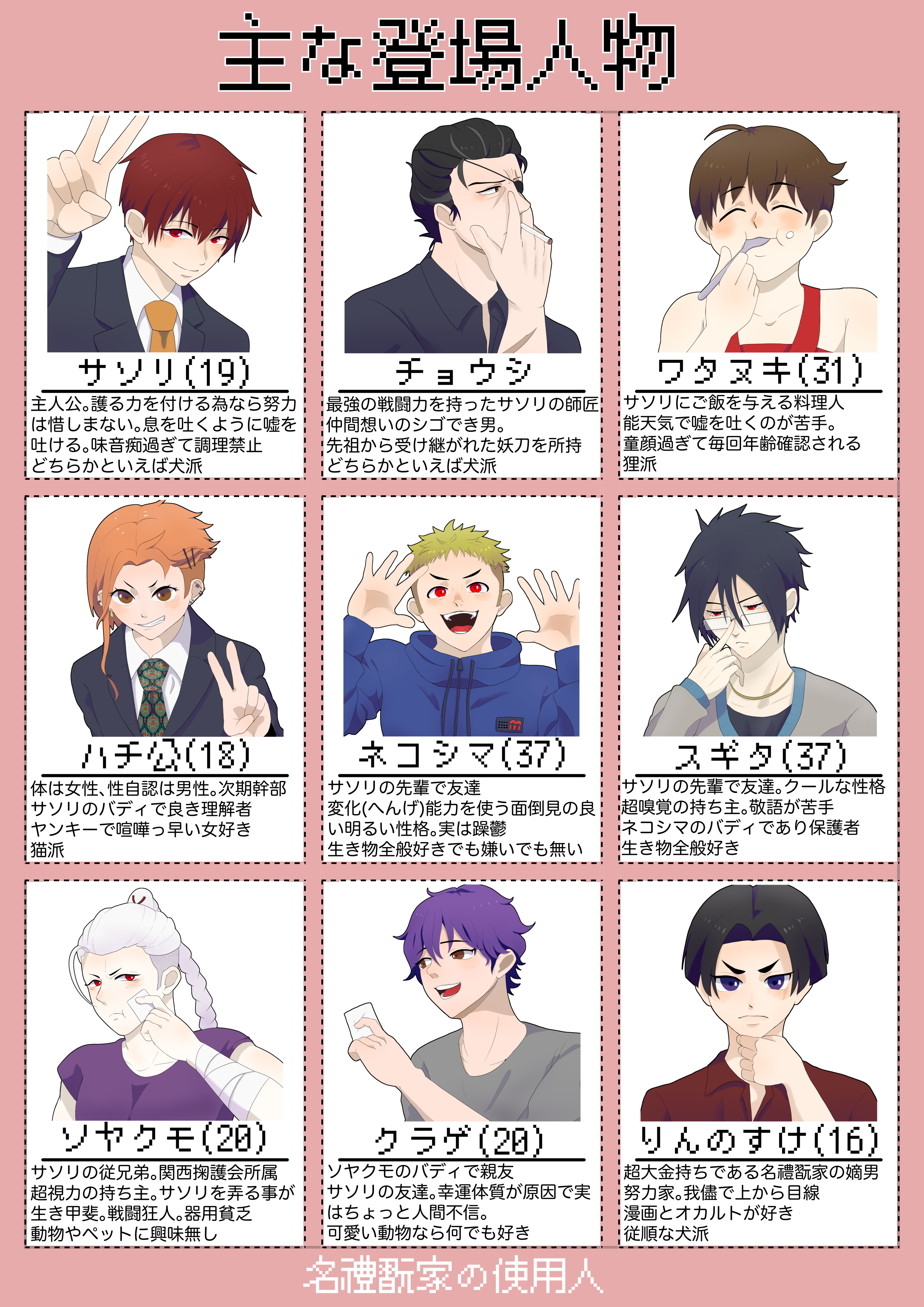 名禮翫家の使用人に出てくる主な登場人物をイラストにしました。