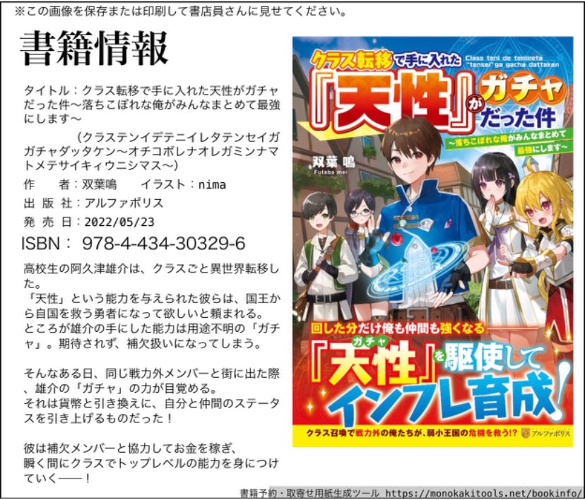 この度【クラス転移で手に入れた『天性』がガチャだった件】が