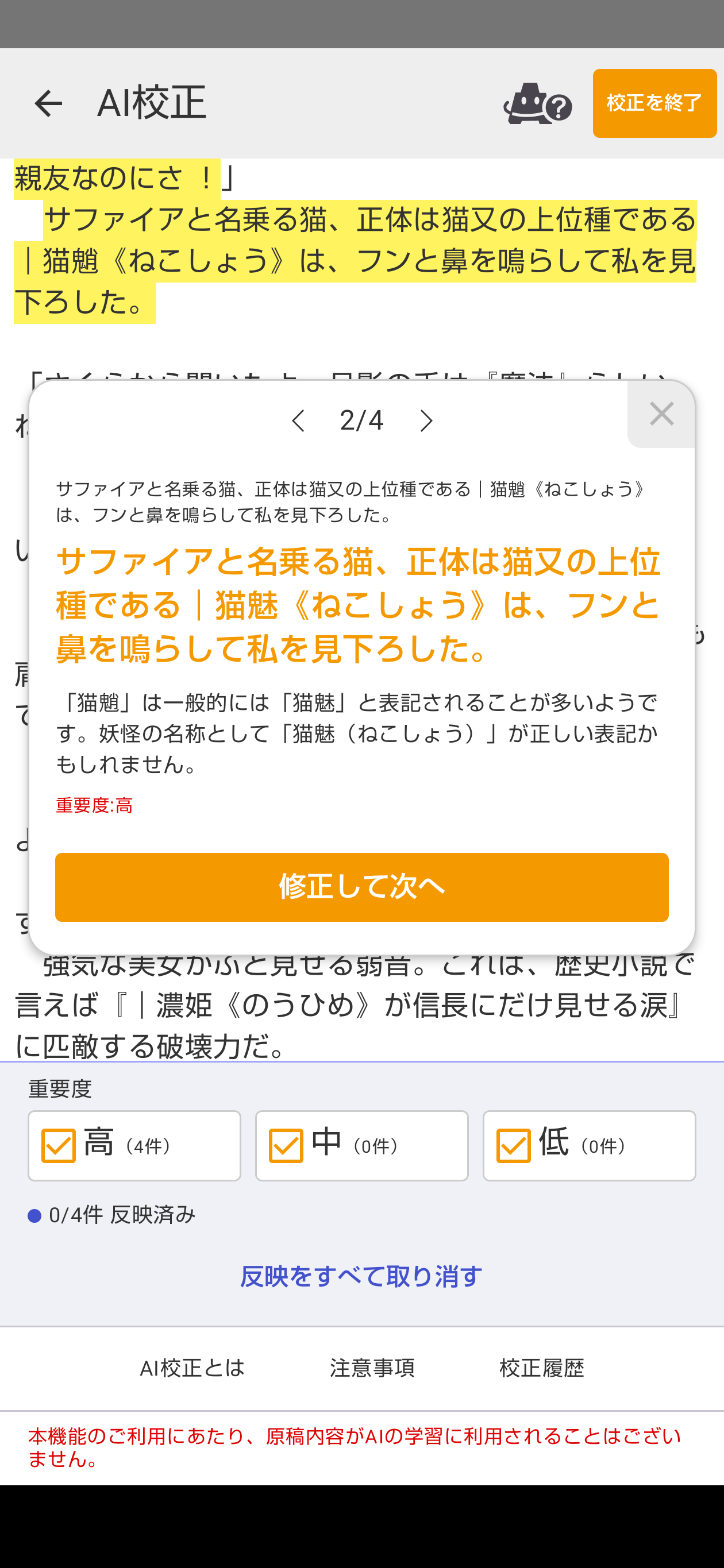 AI校正も、ときどき使っていますが、今一使い辛いですね。