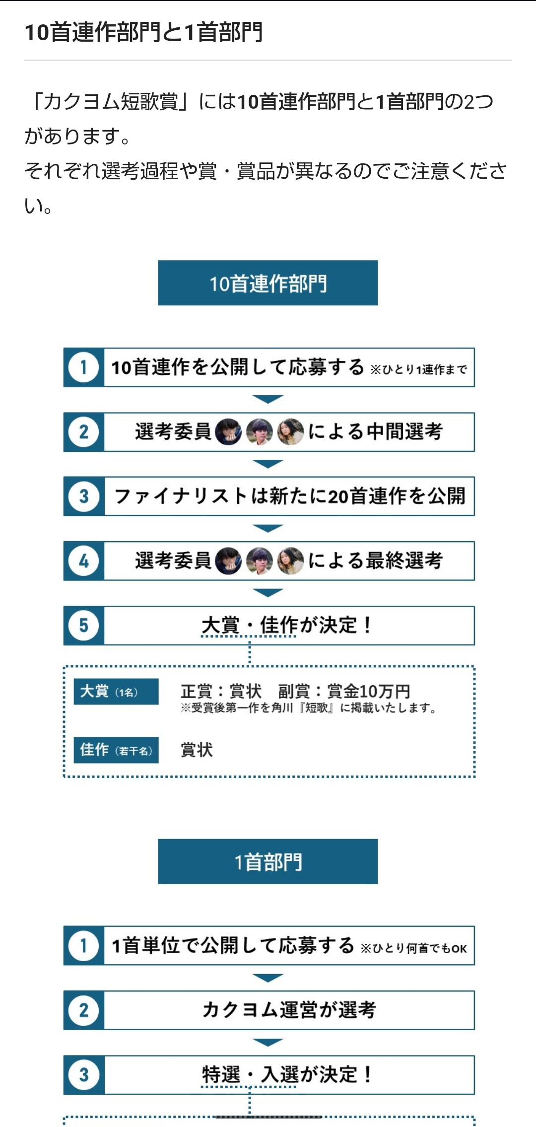 一首部門、連作部門共に読者選考は行われない。